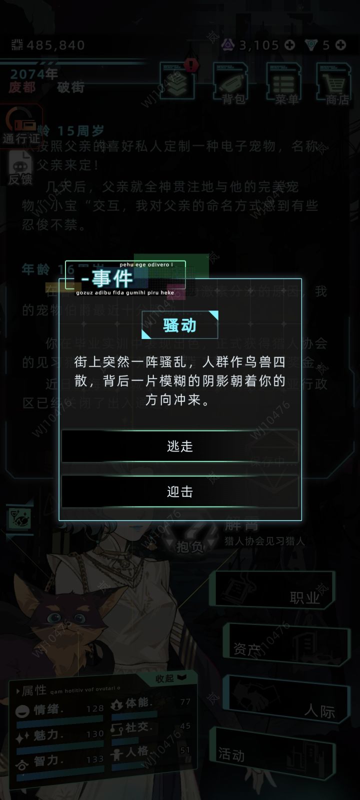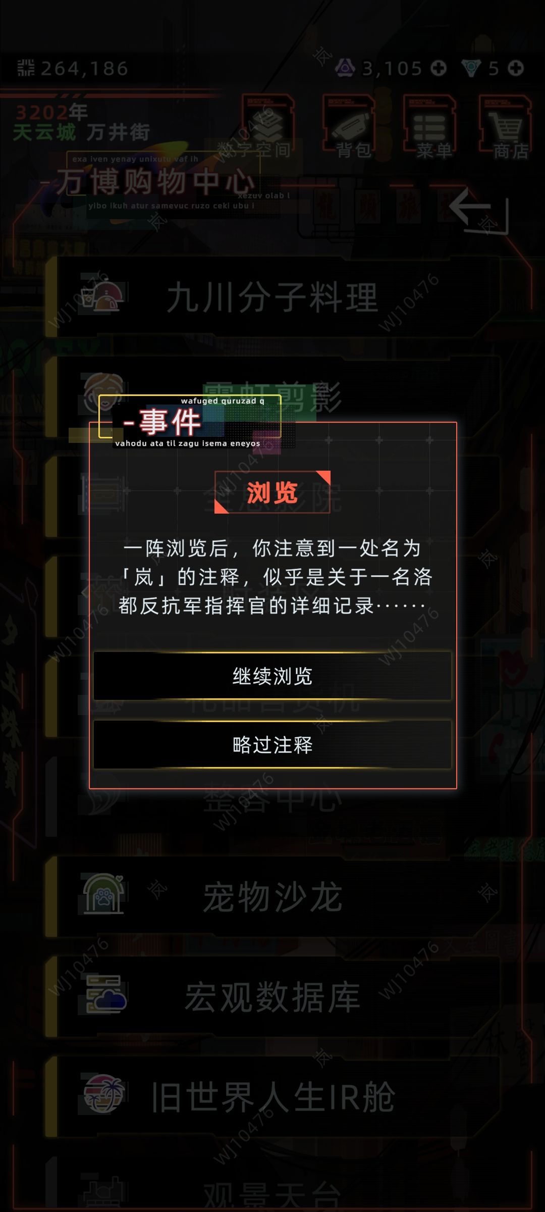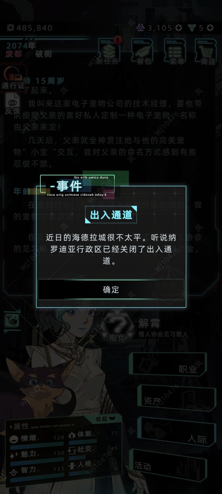 ③自身年龄处在16-20岁之间,前往万井街—商场—宏观数据库后,即可自动触发(如图四-六)