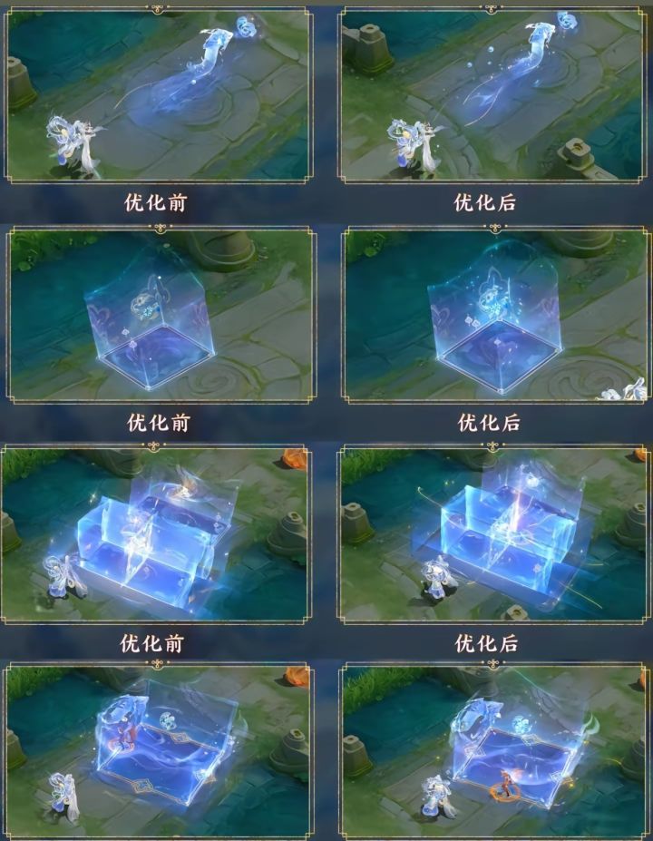 一技能:丰富了灵蛇的粒子拖尾效果以及生息泉水法阵的粒子线条效果,使得技能释放时的视觉冲击更加强烈。