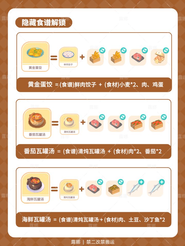 隐藏食谱解锁规则:通过现有食谱+特定食材 烹饪解锁而得,