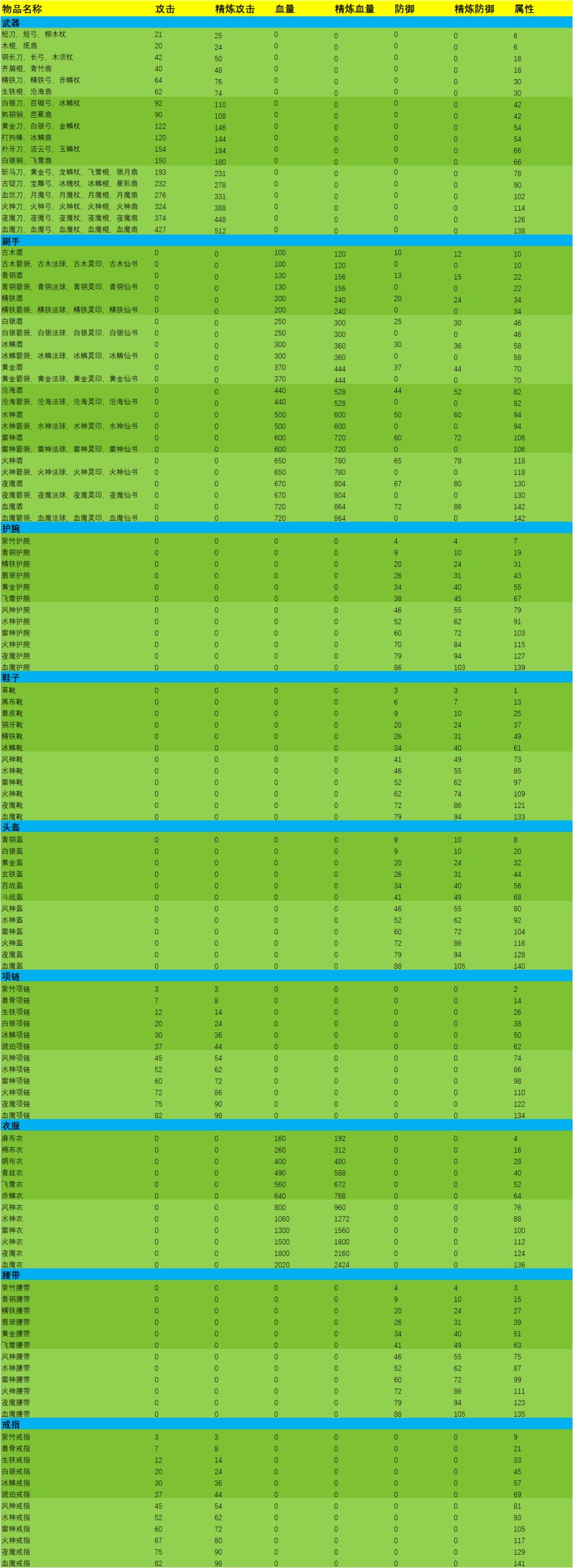 总结可发现,攻防血的极限值为强化一次增加值的六倍,属性极限值为该装备等级的1.2倍,加成的极限值统一为18%。