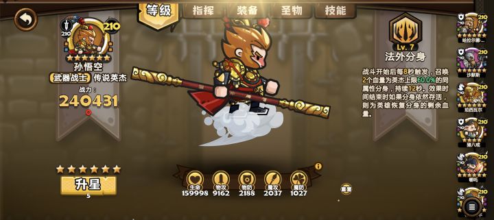 孙悟空作为《小小军团重生》中的核心英杰之一,凭借其独特的“分身机制”与高生存能力,在战场中既能担任前排坦克,又能打出持续输出。以下从角色定位、技能解析 策略、阵容推荐及实战技巧等方面,全面解析孙悟空的玩法。
