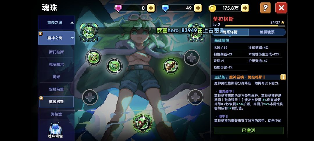 魂珠新魔女的俩都满了,安杜马里的是一开始拿错了武器升到四星拿了魂珠当垫子用了