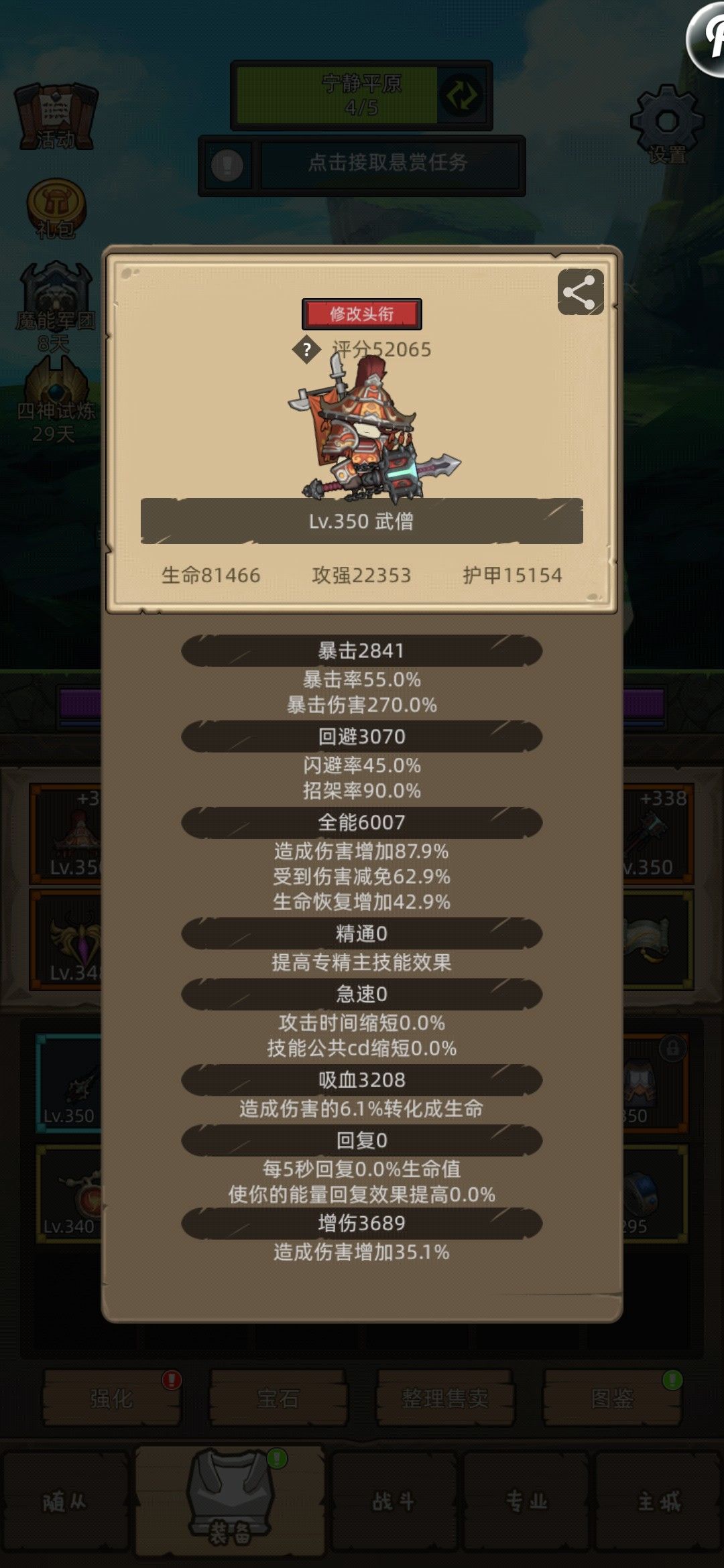 经大量体验服测试及正式服低分试错,圆桌武道挂机属性如下: