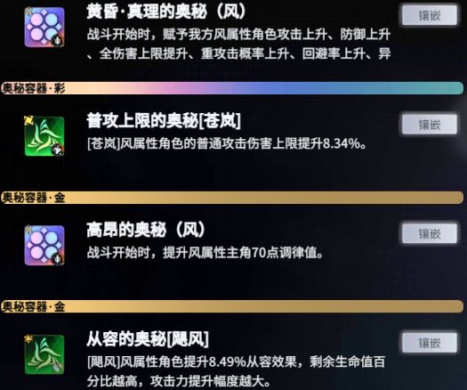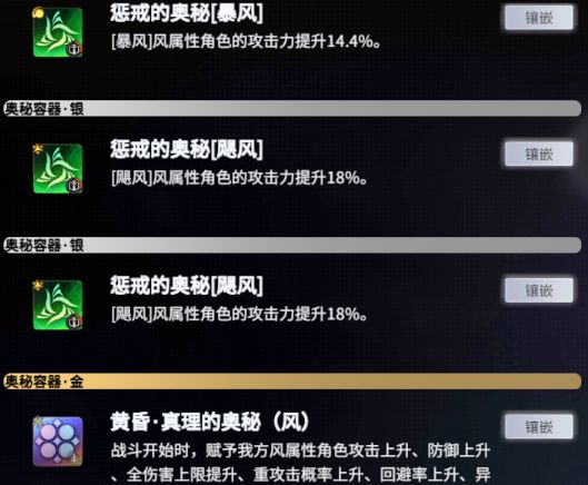 诸神回想盘选择2张救援、2张翡翠、2张浇灌、2张危机、1张休息(调)和1张休息(攻),其中前8张回响均在风属性限定回响卡池中抽取,休息可在商会240金星兑换,均可以使用箱庭奏者淬炼。