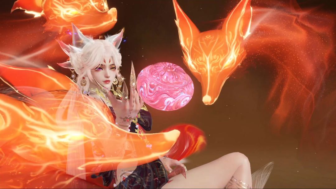 纯洁白狐着轻纱短裙,流光溢彩,高雅圣洁;妖媚赤狐佩火幔金饰,华丽尊贵,熠熠生辉。九尾庞庞,尽显魅惑之姿。双形态的变化更阐释了玉玲珑的鬼马精灵与天通难料。