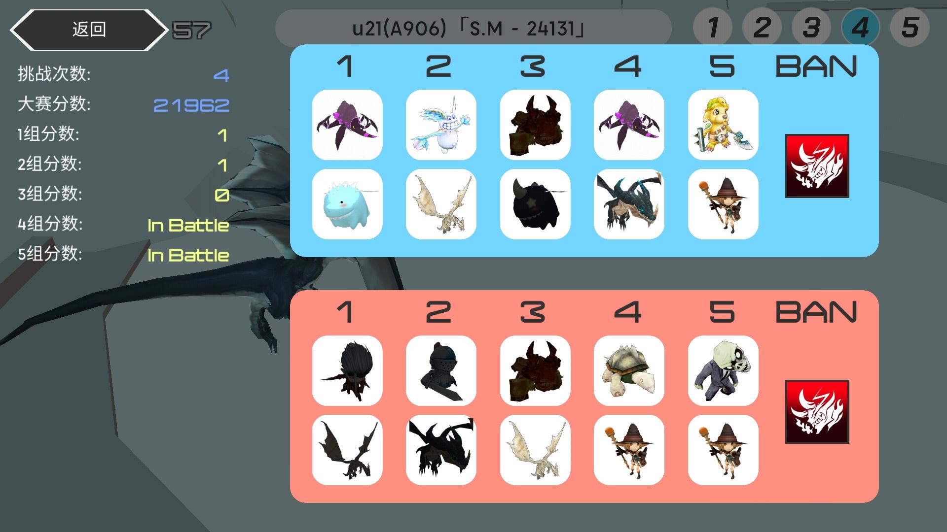 如图,第三组经过激烈比拼两只肉都倒下了,轮到两只输出比拼,我的宝龙在前进的途中被凯旋打死了