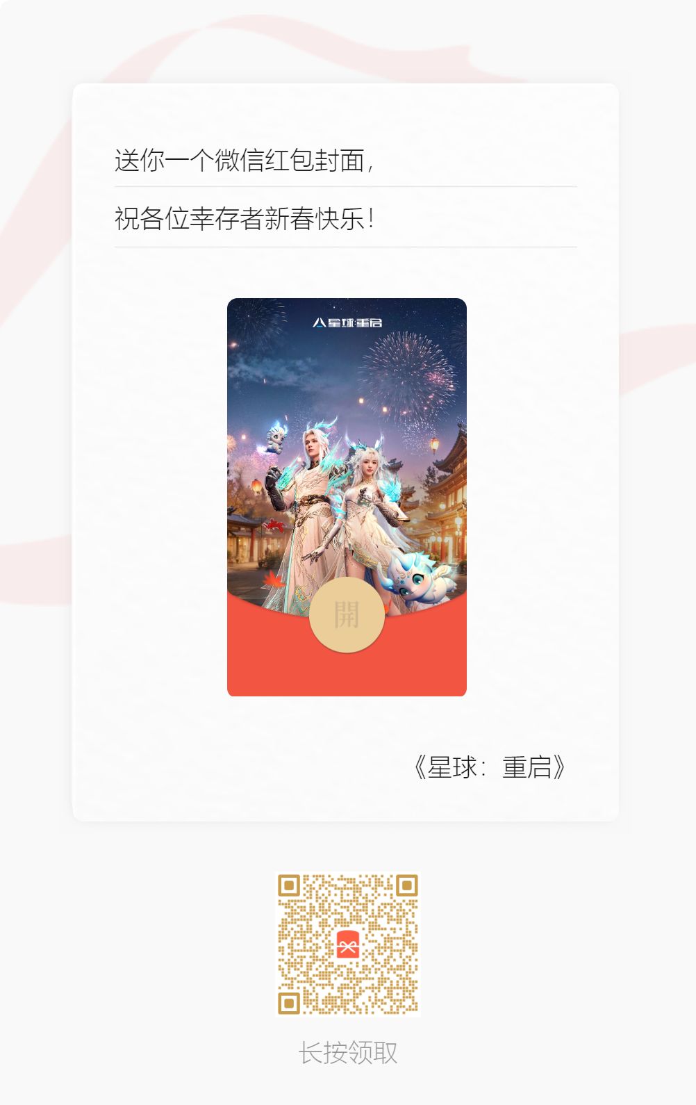 已开奖 | 《星球:重启》蛇年春节限定红包封面上线!