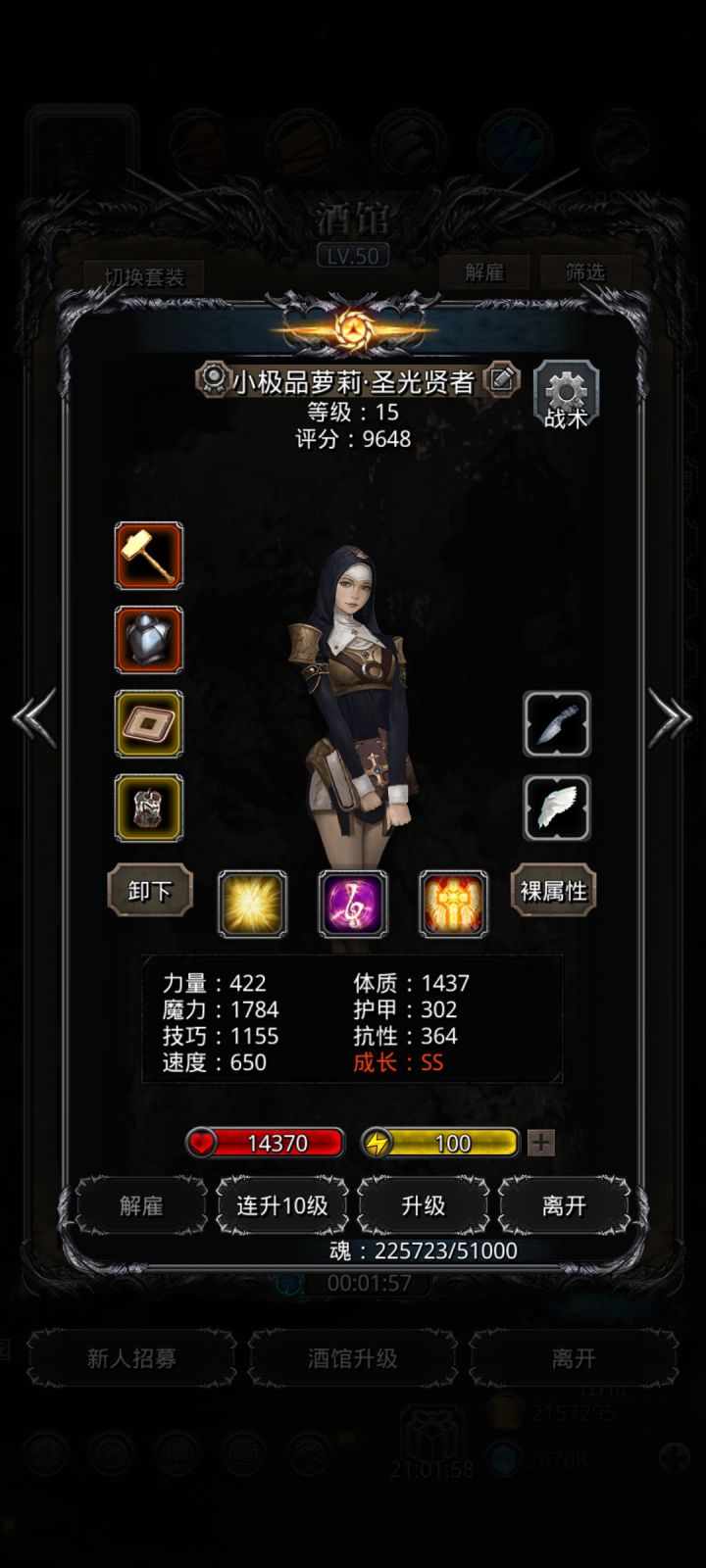 如图所示,这套阵容不怎么刷脸,跟Wiki攻略差不多,奶骑先发嘲讽切手动,看情况奶三个,主奶自己次法师和祭祀最后狂战,因为大概率不会死,保证自己不断嘲讽,全员防火必须,图14的雪衣给火法,火法不攻击需要大量抗性血量抗伤害拉重伤,圣光需要一个熔岩心配高抗衣服先发战利品加抗性,一直奶,狂战时之斧自带100无视,乾坤一击血量最少,火衣图14宝箱送的就很好用,异界芯片加浩劫,是平衡抗性伤害取舍,增加容错,奶骑带什么武器无所谓,熔岩甲,红冠有100无视和吸血为啥不给狂战?因为狂战有火法跟祭祀的群奶扛得住,红冠给奶骑加不少抗性,打大法师偷点输出