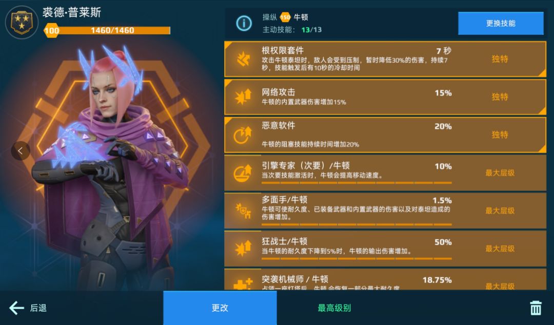 在技能选择方面,[牛顿]可优先考虑枪械宗师、猎奇者、幸存者及泰坦天敌等以提升伤害输出,其次可选用机械师与装甲专家以增强耐久度及恢复能力,最终亦可补充贪路行者以补偿速度损失。