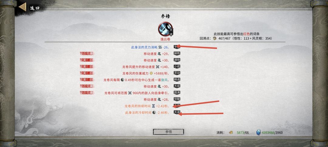 好了,剩下的时间,资源不缺,钱不缺,就是一年一度的拍卖会,注意那个可以改变宗门逆天改命的物品—太古残卷,务必拿下,每次突破大境界时,可以先改变宗门的逆天改命,直到出现自己想要的,然后在灵阁里突破(这里建议提前存档,适当SL,好像手机上洪荒模式也能SL出来)。我的逆天改命是,筑基期(虎魄龙魂),结晶期(小李飞剑—这个是为了等登仙师傅,直接就突破了,所以无法刷宗门的逆天改命),金丹期(杀心骤起),具灵期(中李飞剑—前期太古残卷太少,只能刷这个打打控制,后期没必要升大李飞剑),元婴期(天瞳之刃—跨境界挑战必备,就算刮痧也能硬生生把登仙或者大妖兽刮死)