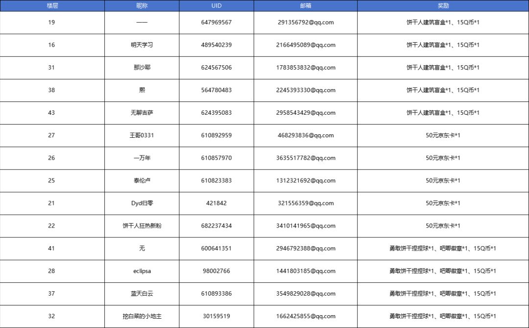 优秀嬉冰运动员5位:我们将从所有参与活动的小伙伴中,抽选成绩最好的五位,每位送上饼干人建筑盲盒+15Q币一份;