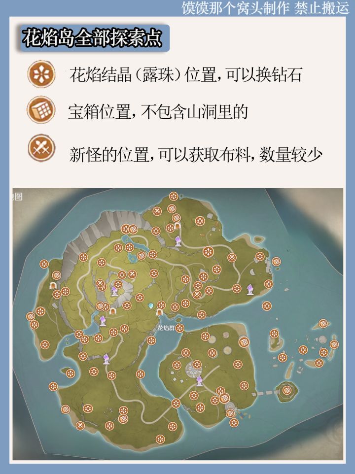 无限暖暖花焰岛宝箱、新布料、花焰露珠点位