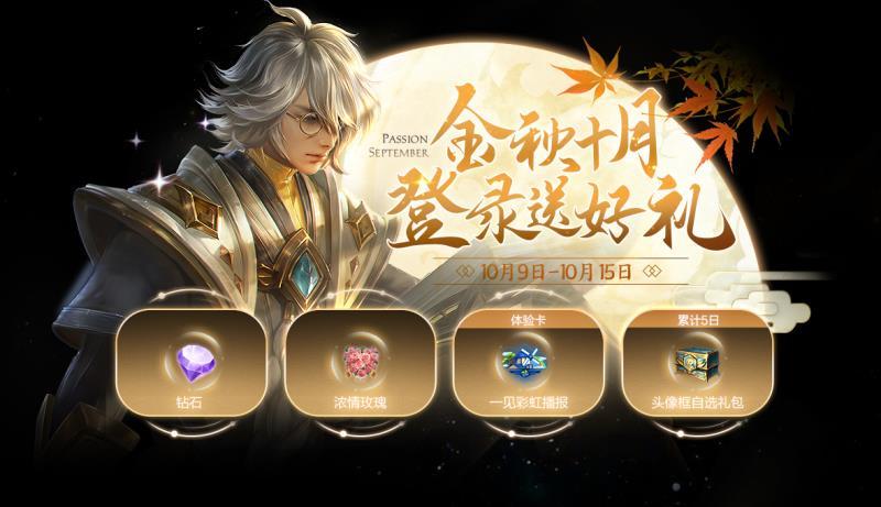 参与金秋十月系列活动,可免费兑换活动专属皮肤、普通皮肤自选宝箱、英雄碎片等奖励!