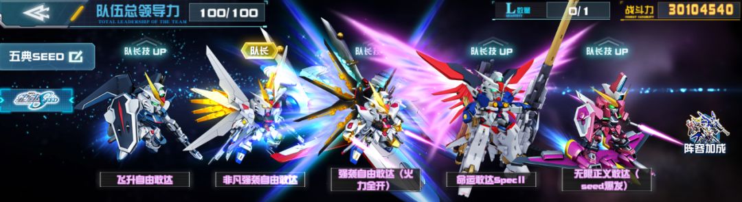 非凡强袭自由敢达、飞升自由敢达、强袭自由敢达(火力全开)、命运敢达SpecⅡ、无限正义敢达(seed爆发)