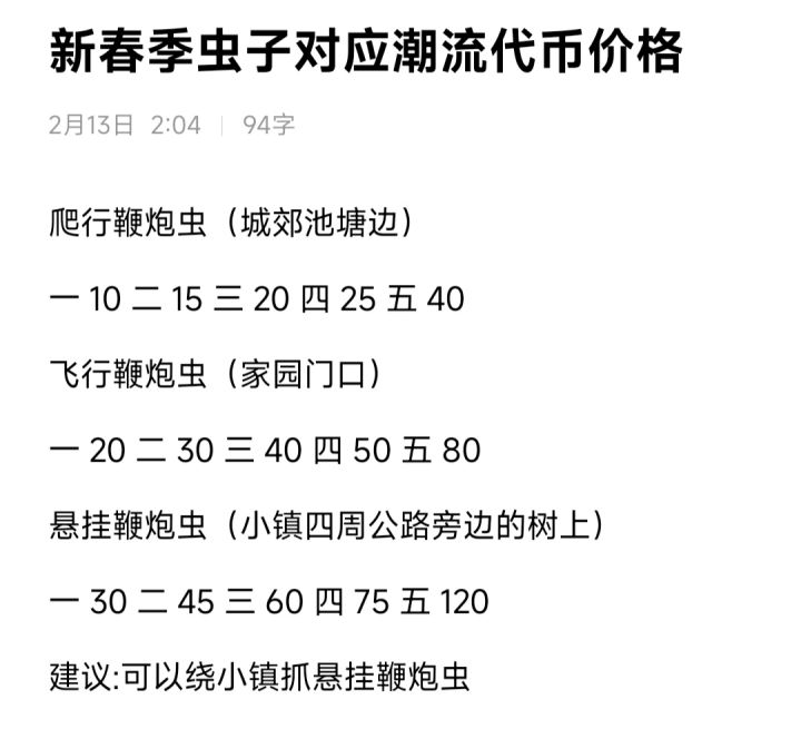 ③虫子不好赚潮流代币,不建议换潮流代币,可以拿新春季虫子放鞭炮炸别人,这样更好玩