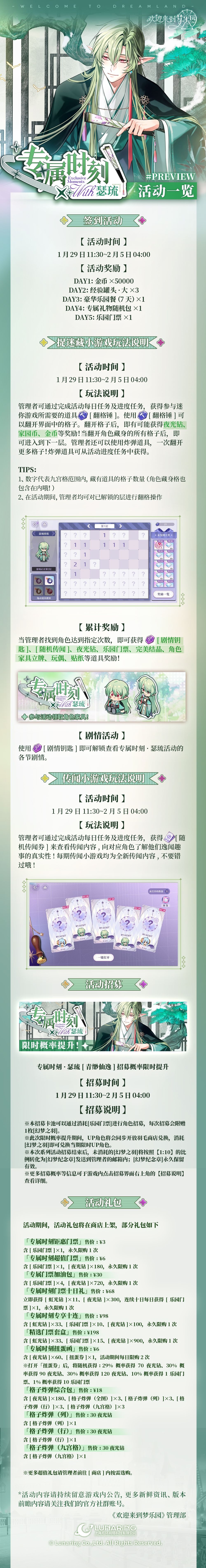 ✨全新迷你活动「专属时刻·瑟琉」1月29日开启!
