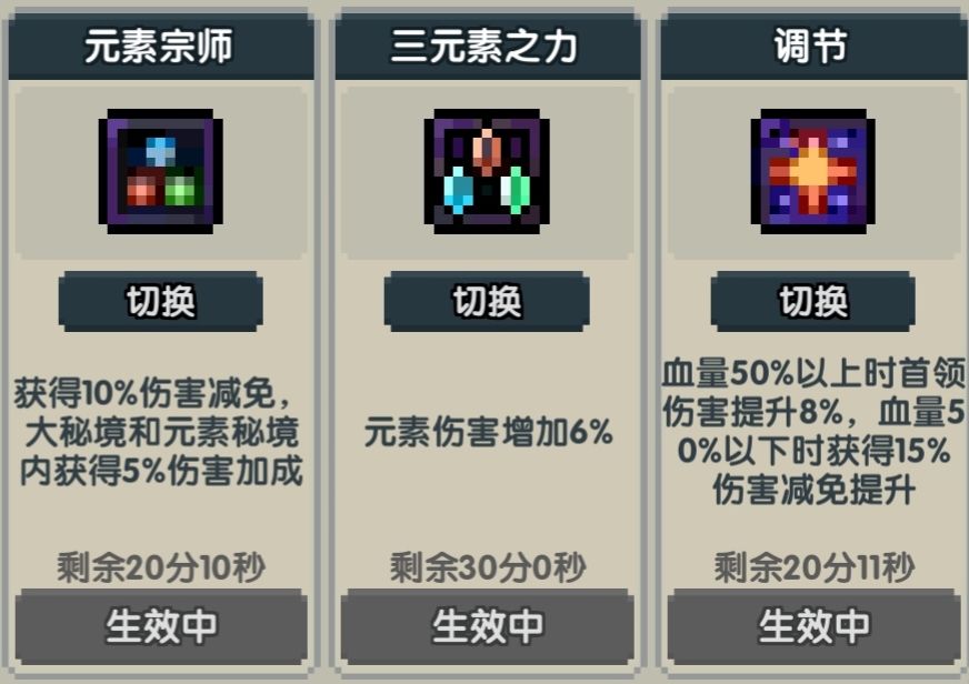 三日为我们增添全伤,二月为我们增添元素伤害,一狼为我们增添元素穿透属性