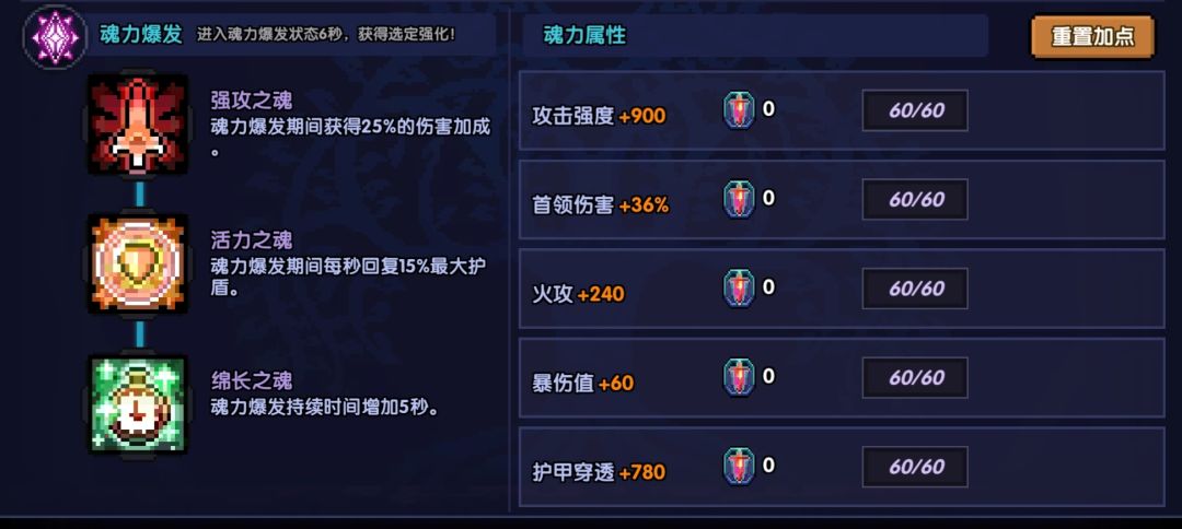 魂力爆发选择:强攻之魂,壁垒之魂,绵长之魂 魂力属性选择:首领伤害点满,火攻,暴伤值,护甲穿透,暴击值点满,两个攻强对半点