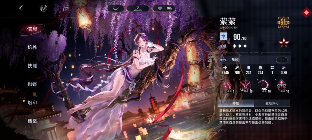 专烙 60% 自己和友方异能可以触发,暴击算2次 全场每秒只能触发3个单位总计3次 藤花层数8 提高80%伤害