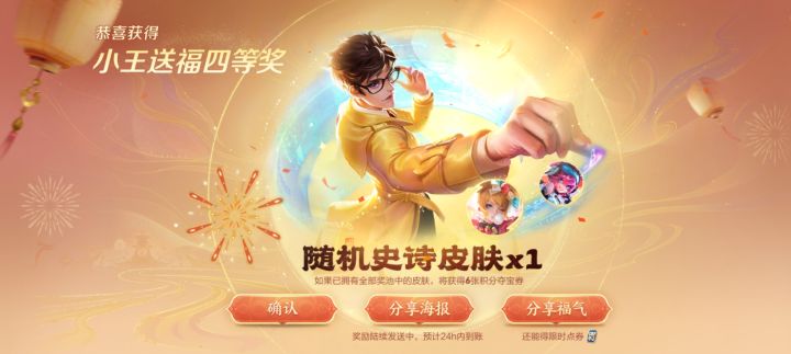 王者荣耀送限时点券啦!复制我的福气码【蔷薇恋人9TIW9W】前往活动,参与小王送福中大奖!