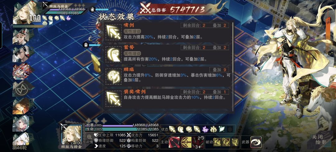 马蹄金前几轮输出差点,后来吃了攻击buff后输出肥肠高。还有增益,这期boss明显抬限定。