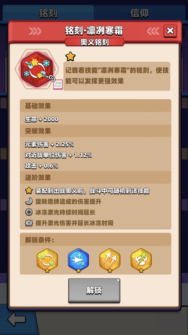 铭刻系统我应该是悟了 说说自己的见解 能出战的目前一共5个 解锁之后在出战闯关中升级能拿到这个技能 这个应该是个全新的技能 我看了一下最容易解锁的是4个召唤技能 影分身 狼 蝙蝠 大刀兵 有这4个解锁炎魔 呵呵哒