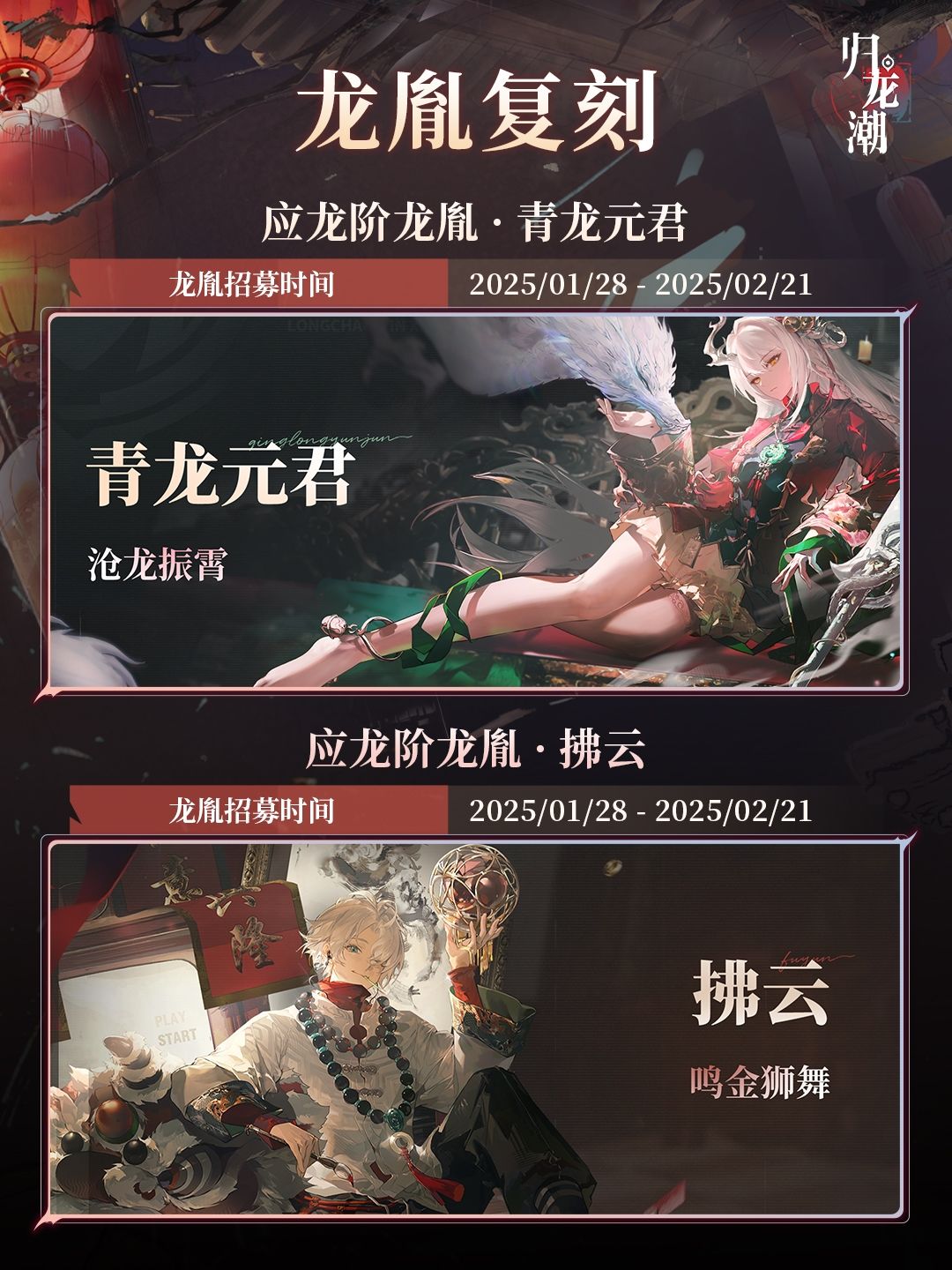 亲爱的导演,「沧龙振霄-青龙元君」&「鸣金狮舞-拂云」复刻招募即将开启!