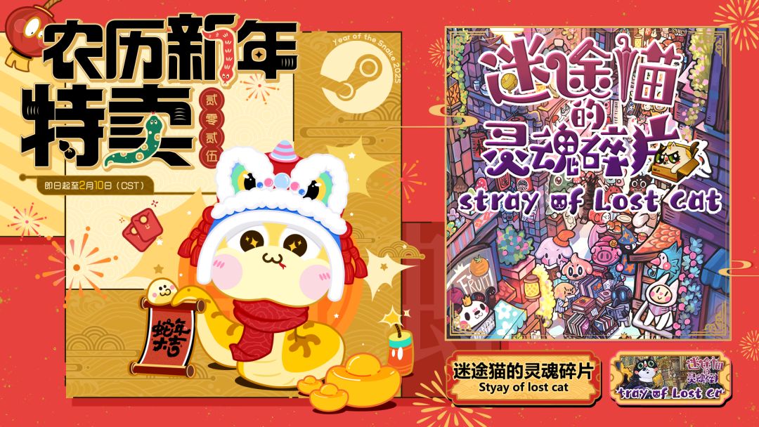 本次农历新年活动,我们将有两款项目与各位见面,已上线售卖的策略性游戏《卡牌迷境》和正在进行Demo试玩的休闲寻物游戏《迷途猫的灵魂碎片》