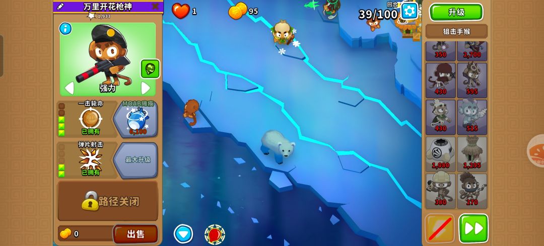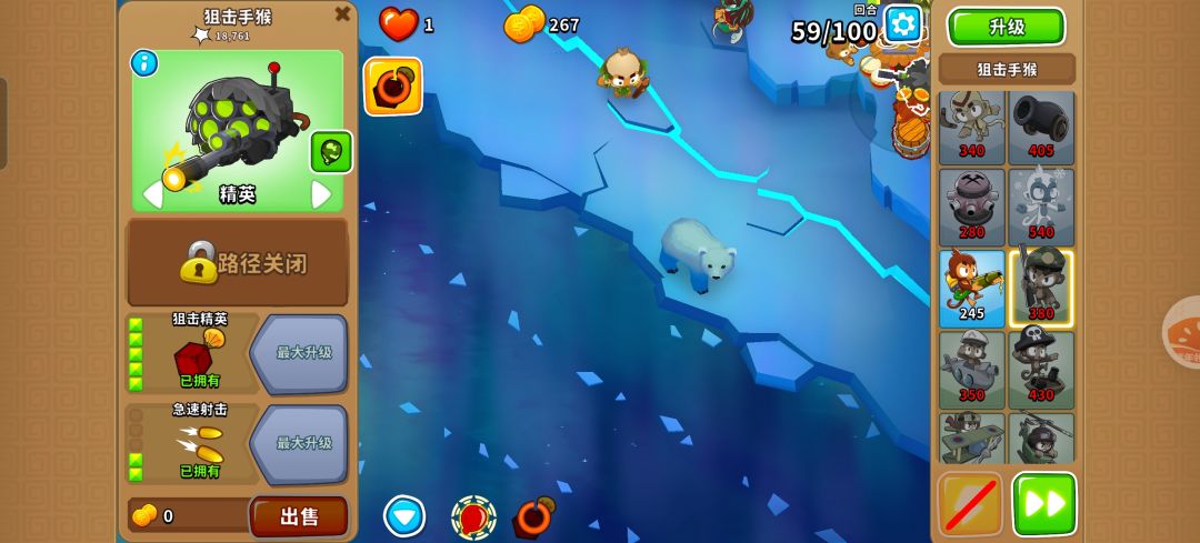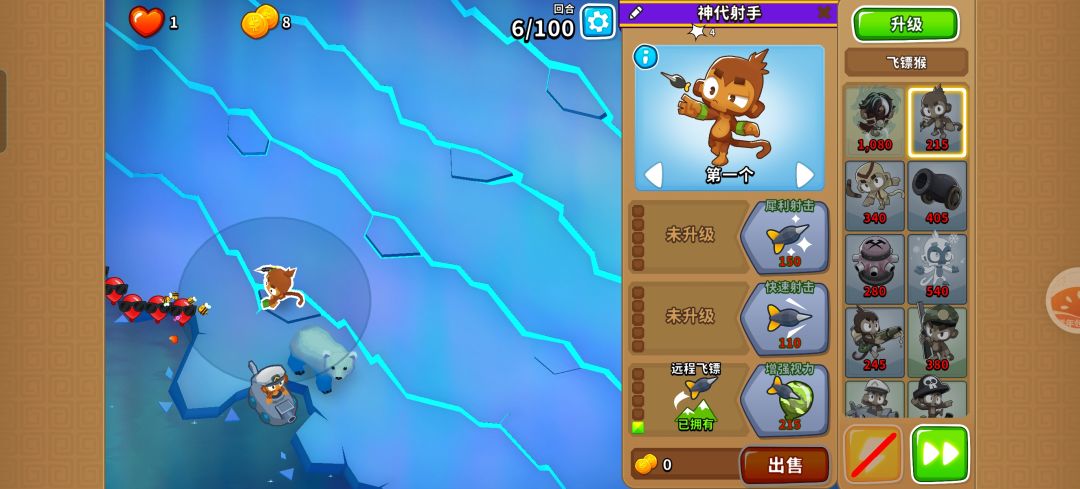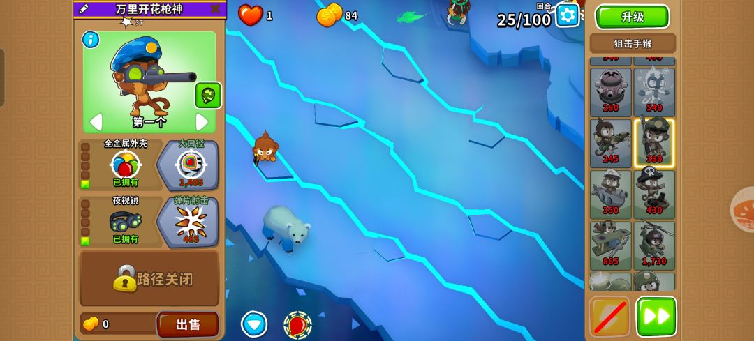 1,在猴村下面紧贴着墙出第二个狙击猴,点到320