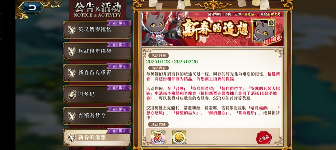 春节和周年庆期间有累计消费活动