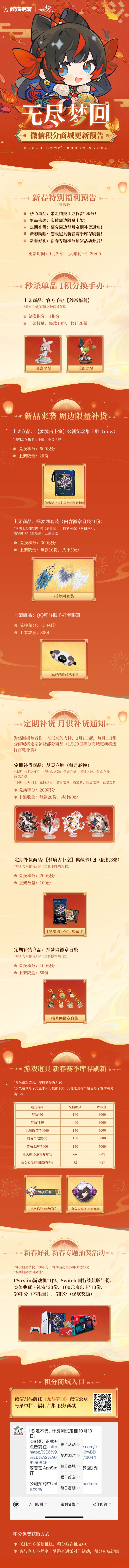 【上新预告】无尽梦回微信积分商城1月29日更新