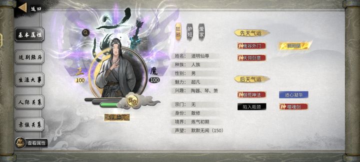 1.打开游戏,创建一个带有先天气运噬魂剑的档(这个档只是一时之需,因此不用在意形象属性)直接进入,加载动画后出现身世界面(例如龙祖气运会写小时候有奇怪毛毛虫的文字)不要点确定,直接大退清后台