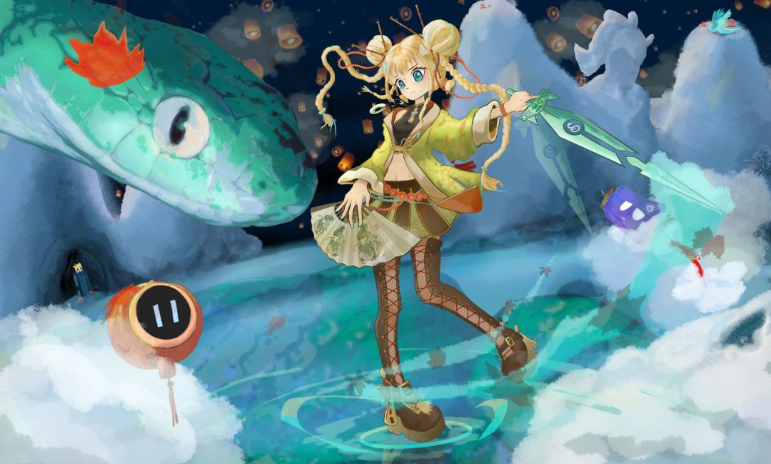 挥舞玉剑与巨蛇在水面和巨蛇嘻舞的嗒啦啦(被压画质自行下载)