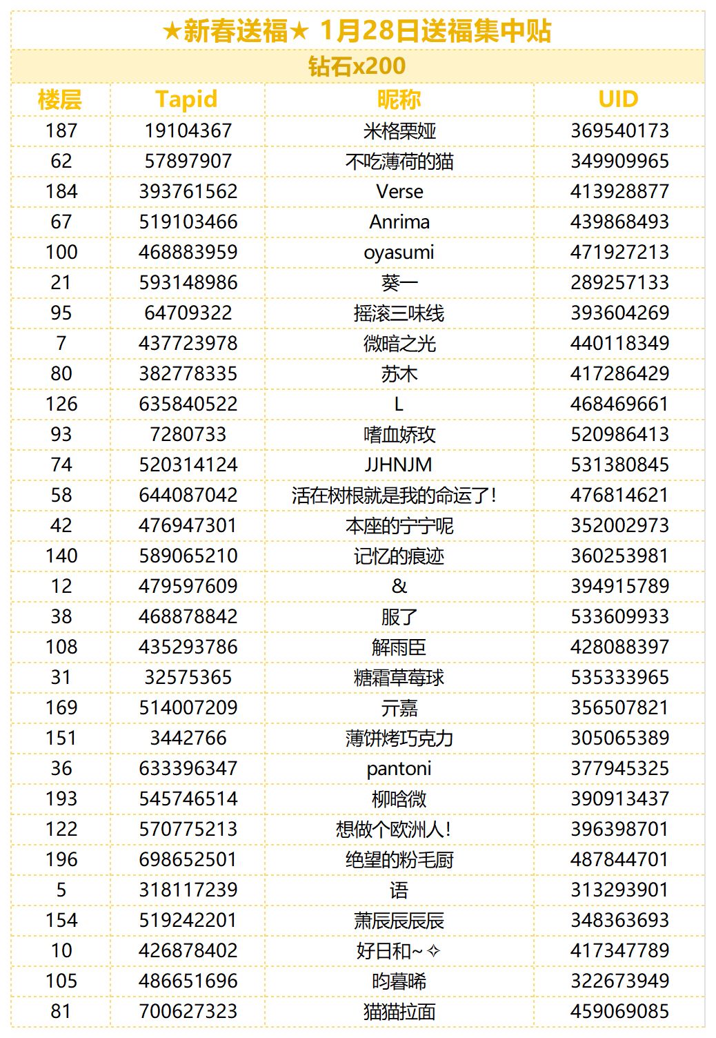 本贴回复期限为1月28日12:00-1月29日11:59,未在规定时间内回复将无法参与本日获奖统计哦!