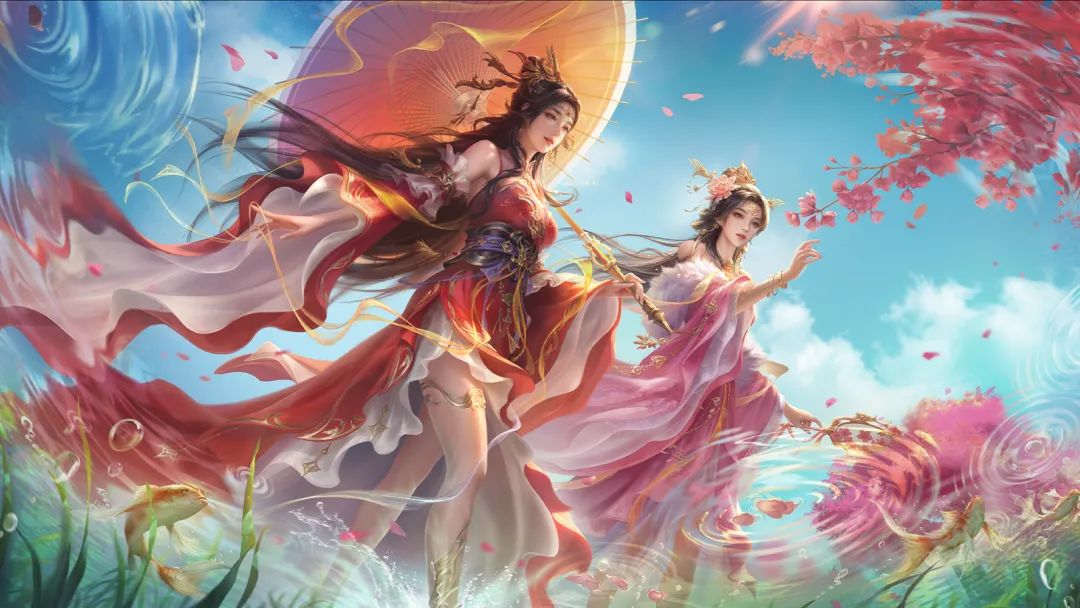 咦?这是在水下吗?还没来得及回神,便感到水波荡漾。只见甘、靡夫人轻踏水波,给湖面带来一丝涟漪,即使在水下也仿佛闻到了沁人心脾的香气。