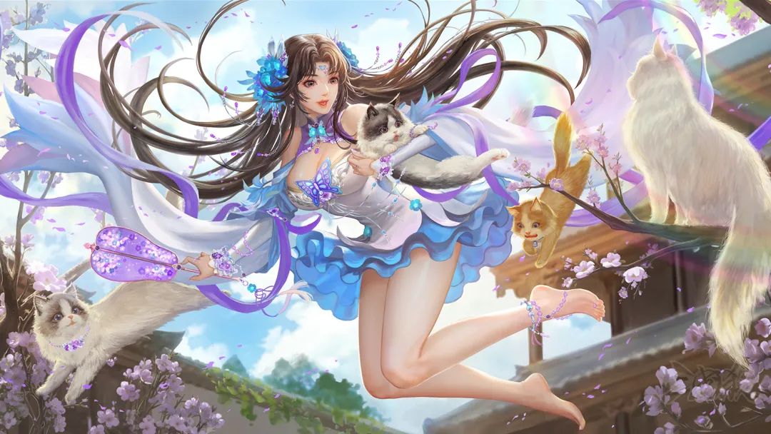 今日天气甚好,悠闲散步于街上,忽听到有喵喵的叫声,还伴随着女子的娇呼,抬头一看便看到曹华仿佛彩蝶一般。