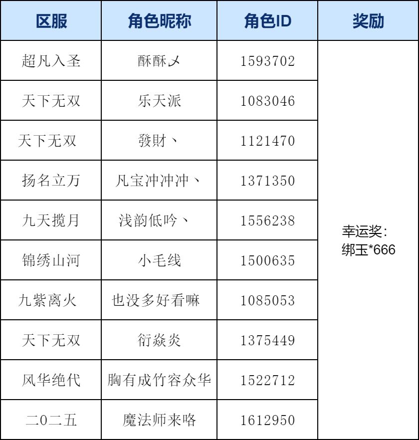 ● 幸运奖:绑玉*666(由系统随机抽取10名寻火者送出)