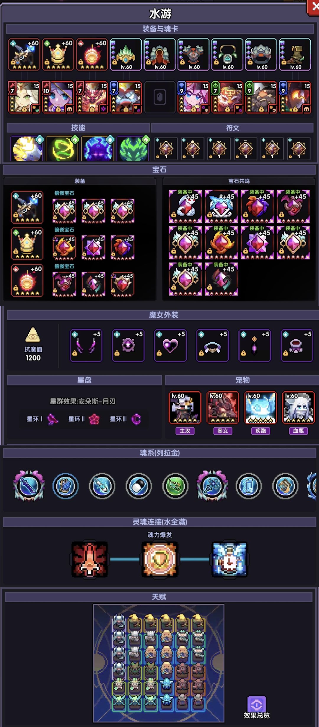 左边三个如上图选即可,右边属性方面此先点满穿透、暴击、首伤后点爆伤、水攻,攻强和无限攻强8:3分开点即可