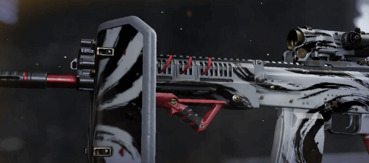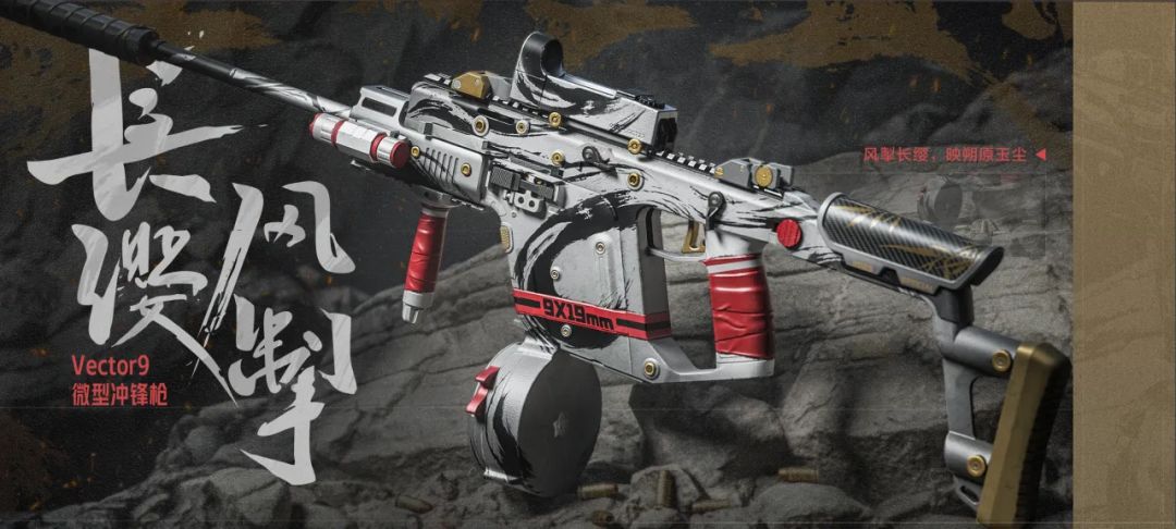枪械的银灰色调如宣纸般纯净,肆意挥洒的黑色墨痕却刚劲有力,红色胶带的缠绕点缀使其更加亮眼。