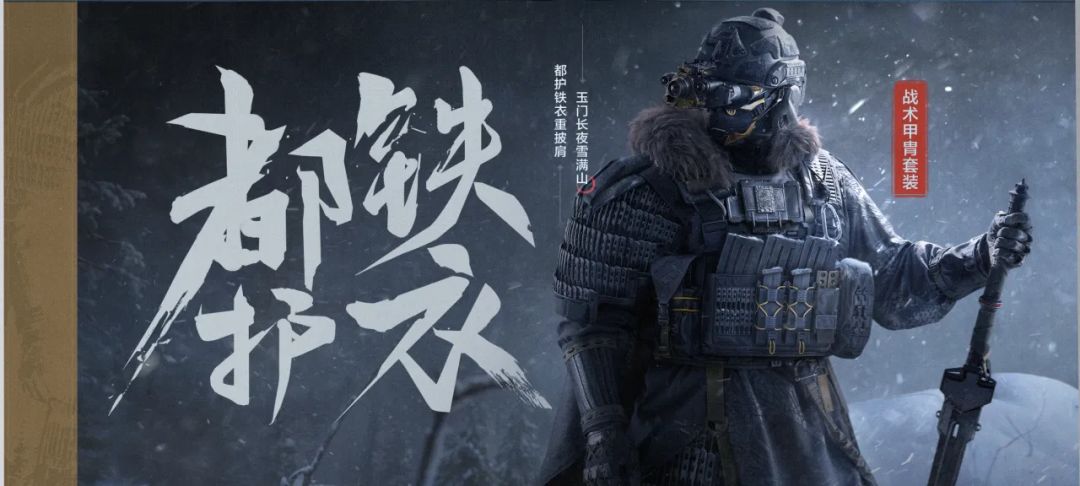 【风雪玉门】主题军需强势降临,不仅有都护铁衣 · 战术包和绕指玉鸾 · 战术包(战术包内有全新可署名的武器-战术剑、热成像涂装等14种配件),还有AX50、RPK16和Vector9等枪械涂装等待先锋们的获取!完成福利活动任务还有20抽哦!