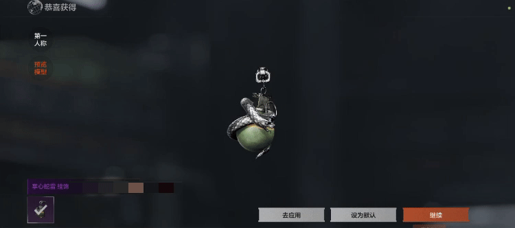 手雷挂饰呈诡谲之形,蛇缠雷体,一条银灰色的蛇蜿蜒盘踞在墨绿色的手雷上,仿佛随时准备发动致命一击。