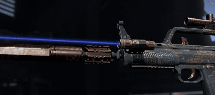 以黑色做为主色调,桐金点缀其中,“蛇”字遒劲有力,蛇形图案游走于枪械,己巳年新风貌,T03、T951全新涂装为战斗注入无尽力量。