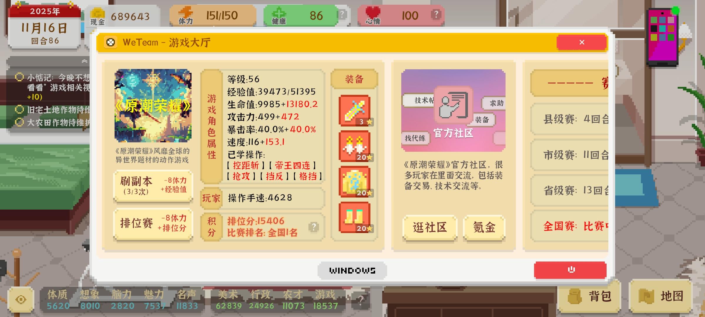 33.没有操作,全是实力:电脑→游戏中心→刷副本