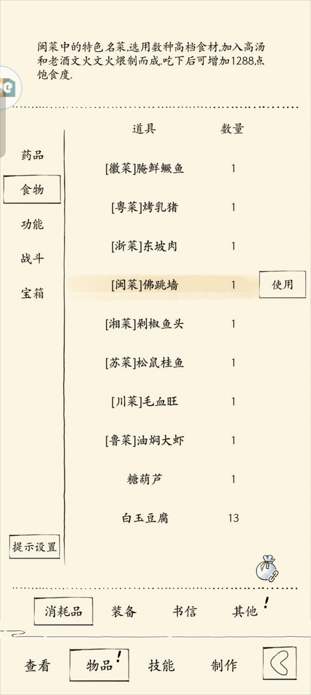 每桌上左上右,下左下右四道菜都可以点一遍。获得如下图所示物品。