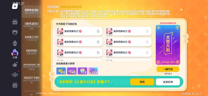4.每次打开红包会附带彩虹补给钥匙(可能是bug)