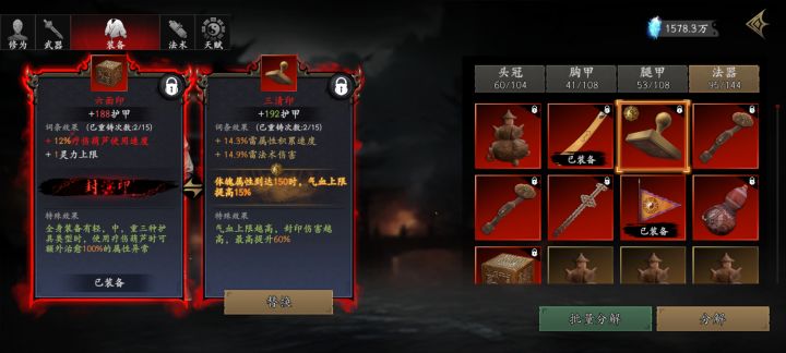 解封的词条可以联系起来使用,虽然潘龙护腿的词条不好,但是能和三清印的解封词条联动。