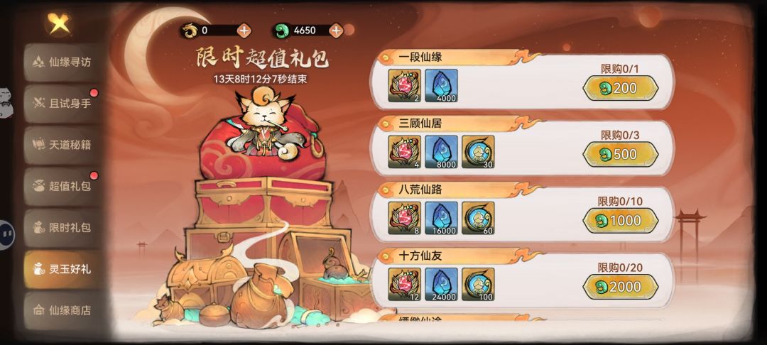 tip:礼包的寻仙令可以永久保留,可以先把便宜的买掉囤抽,等到后面抽「敖天」