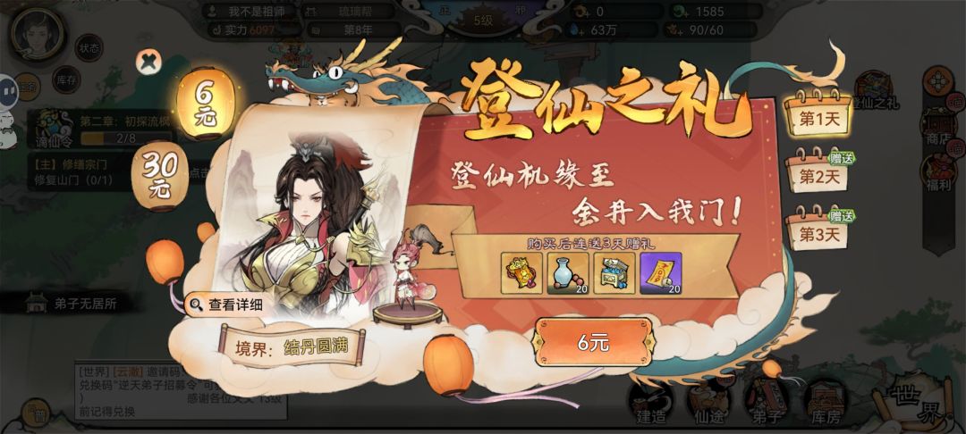 主要进行招募角色,前期紫色及以上的弟子都可以保留,其他可以拒绝获得尘缘,主要换道侣洞府和天命灵魄