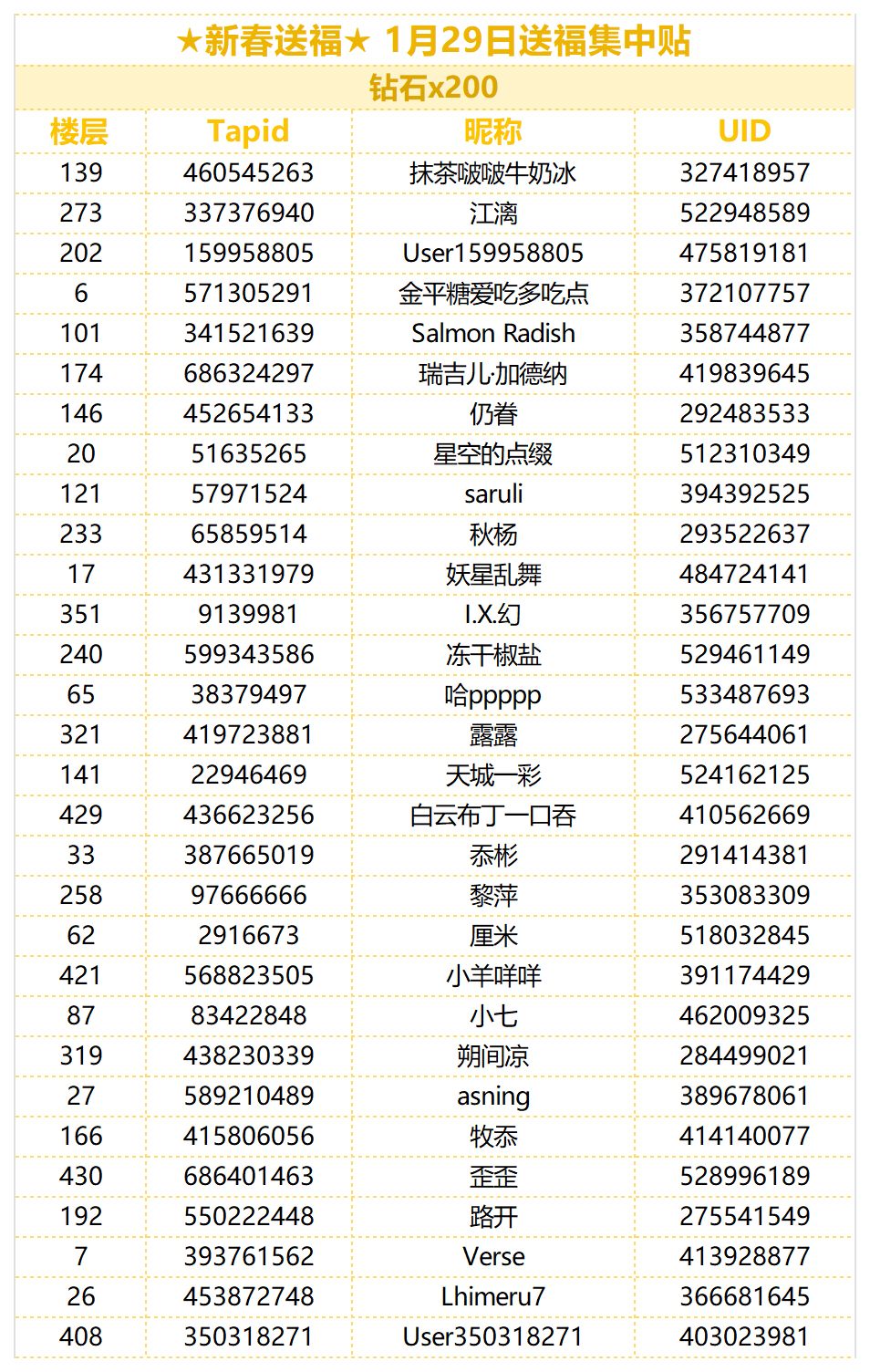 ★新春送福★ 1月29日抽奖