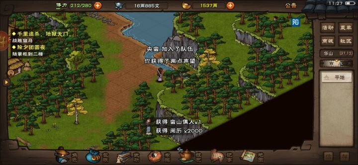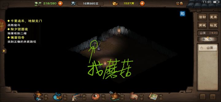 央蛮入队任务后续,买了木偶后,晚上去成都快到青城山的路上触发剧情,后面跟着提示走就行了,唯一的难点去进入迷宫后找洞口【找洞口有蘑菇的洞口走】其他走剧情